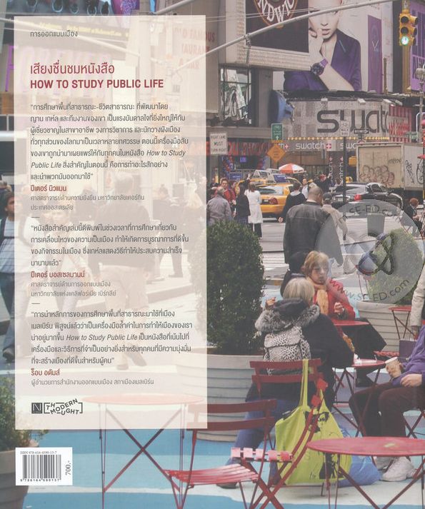 หนังสือเล่มนี้บอกเล่าว่าเราจะศึกษาปฏิสัมพันธ์ระหว่างชีวิตสาธารณะและพื้นที่สาธารณะได้อย่างไร การศึกษาอย่างเป็นระบบแบบนี้เริ่มขึ้นอย่างจริงจังเมื่อช่วงต้นของยุค 1960 ตอนที่นักวิจัยและนักสื่อสารมวลชนมากมายจากต่างทวีปพากันวิพากษ์วิจารณ์การวางผังเมืองในช่วงเวลานั้นที่ได้หลงลืมชีวิตที่อยู่ในเมือง วิศวกรการขนส่งให้ความสนใจไปที่การจราจร ภูมิสถาปนิกดูแลสวนสาธารณะและพื้นที่สีเขียว สถาปนิกออกแบบอาคาร และนักวางผังเมืองมองภาพรวมทั้งหมด การออกแบบและโครงสร้างได้รับความสนใจอย่างจริงจัง แต่กลับละเลยชีวิตสาธารณะและปฏิสัมพันธ์ระหว่างชีวิตกับพื้นที่ หรือเป็นเพราะมันไม่ใช่เรื่องจำเป็นจริง ๆ แท้ที่จริงแล้วผู้คนต้องการแค่บ้านและเมืองที่อยู่ด้วยกันเหมือนเครื่องจักรจริงๆ หรือ เสียงวิจารณ์ที่ว่าพื้นที่พักอาศัยที่สร้างขึ้นใหม่ขาดความมีชีวิตชีวาไม่ได้มาจากแค่เหล่าผู้รู้ในวงการวิชาชีพเท่านั้น สาธารณชนจำนวนมากก็วิจารณ์อย่างหนักเรื่องพื้นที่พักอาศัยที่สร้างใหม่อย่างทันสมัยที่สนใจเฉพาะเรื่องแสงสว่าง อากาศ และความสะดวกสบาย ![]() ข้อมูลหนังสือ