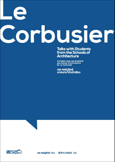 ท่ามกลางข้อมูลมากมายเกี่ยวกับ เลอ คอร์บูซิเอร์ แบบสามหมื่นสองพันแผ่น สมุดบันทึกเจ็ดสิบสามเล่ม หนังสือรวบรวมผลงานเก้าเล่ม และ archive อีกสามสิบสองเล่ม และงานเขียนอีกนับไม่ถ้วน หนังสือเล่มเล็กๆ เล่มนี้ เป็นเพียงเสี้ยงหนึ่งของการแสดงออกซึ่งความคิดของ เลอ คอร์บูซิเอร์ที่ทิ้งไว้ให้เราได้ตีความ บทสนทนาสั้นๆนี้ อาจนำเสนอมิติของความคิดที่เราเคยมองผ่านเลย แสดงให้เราเห็นว่าสถาปัตยกรรมนั้นดูเหมือนจะเกิดขึ้นเพื่อรองรับ ไม่ใช่เรียกร้อง และเมื่อเราพิจารณามิติของความคิดภายใต้ตัวหนังสือเหล่านี้ ความหมายของสถาปัตยกรรมในแง่มุมอื่นอาจเริ่มเผยตัวตนและนำพาให้จินตนาการของเราเดินทางไปได้ในเส้นทางที่เราไม่คุ้นเคย -ต้นข้าว ปาณินท์, ผู้แปล ![]() ![]() ![]() ![]() ![]() ![]() ![]() |